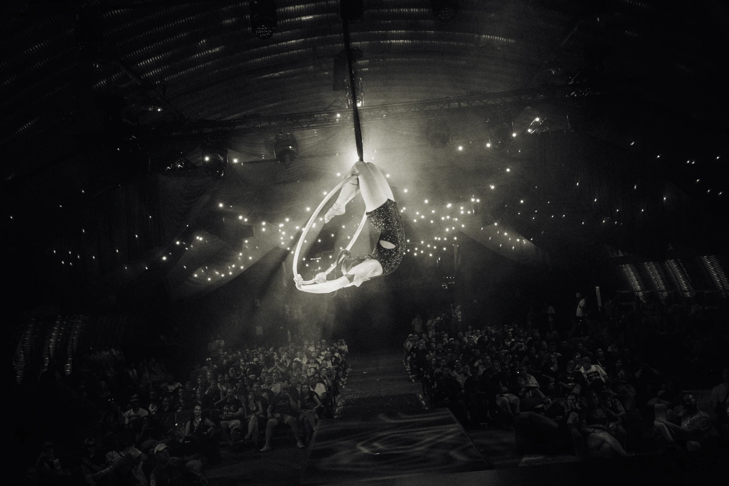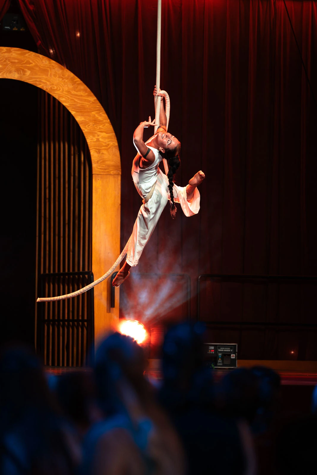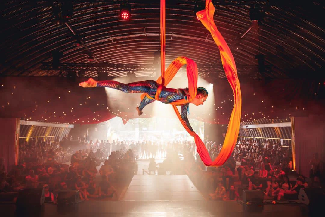 Unsere Luftartistin, Nina Naomi ist eine leidenschaftliche und erfahrene Luftakrobatin mit Auftritten auf internationalen Bühnen und einem Hintergrund in Tanz und Theater.